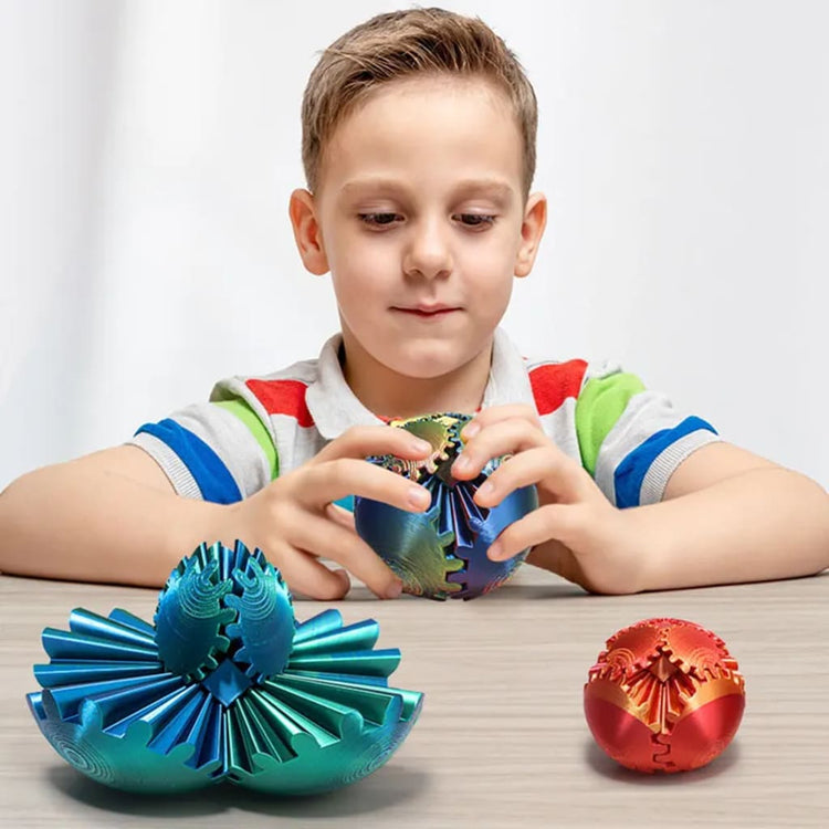 The GearSphere features interlocking gears that you can twist, flick and roll in your hand, providing tactile feedback and satisfying movement.